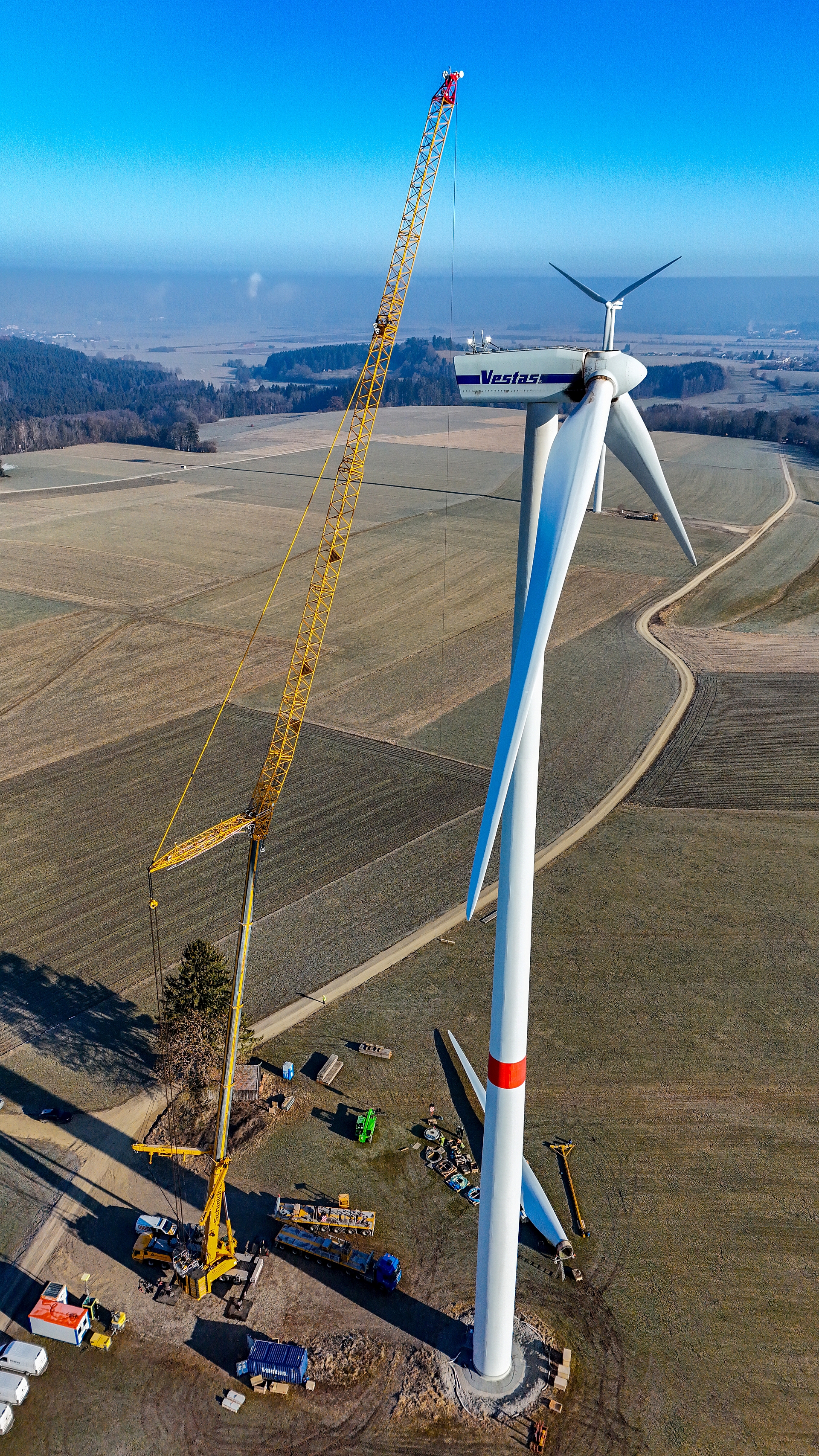 In the Denklingen area of Bavaria, German crane rental company Schmidbauer completed a demanding and time-critical wind turbine project. The company used its Grove GMK6400-1 to replace the bearings on all three turbine blades. The work included the removal of the rotor blades, the dismantling and refurbishment of the bearings, and their reinstallation — a process requiring maximum precision and absolute reliability.