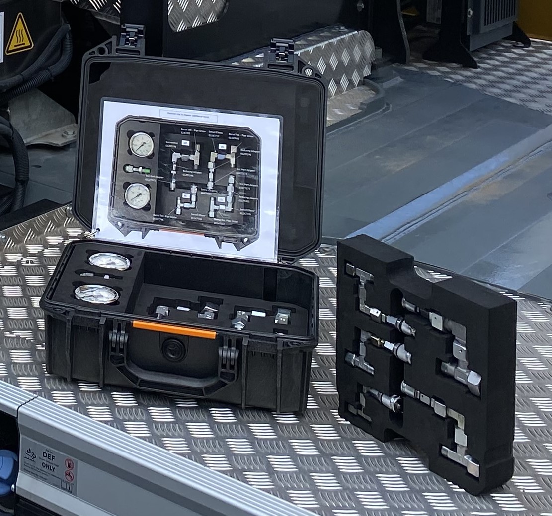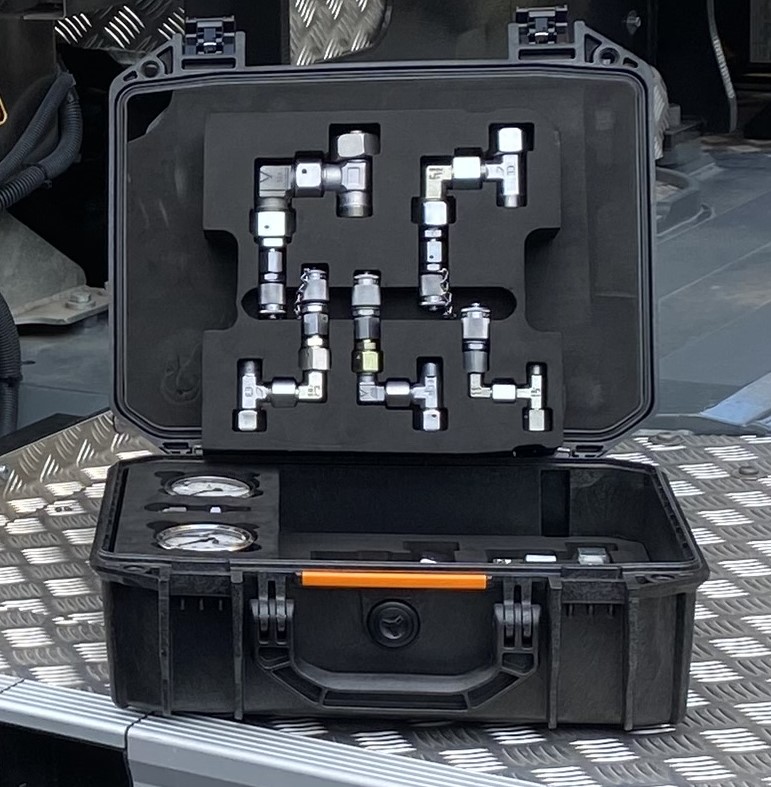 Also on display is the DIN Hydraulic Pressure Test Kit, a compact, ready-to-use diagnostic solution that allows technicians to quickly and accurately measure hydraulic pressures to ensure peak performance on Grove GMK cranes. The all-in-one kit delivers faster troubleshooting and more precise service interventions.
